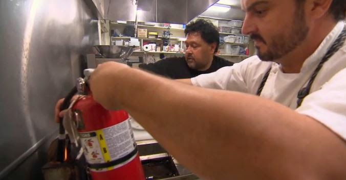 9. I was surprised that there wasn't a trademark "CLEAN THIS KITCHEN!" scene on "day one" of the rescue, something that in this case might have prevented the fire. Of course, I'm surprised bar owners don't clean their kitchens, let alone bar owners expecting a visit from Jon Taffer.